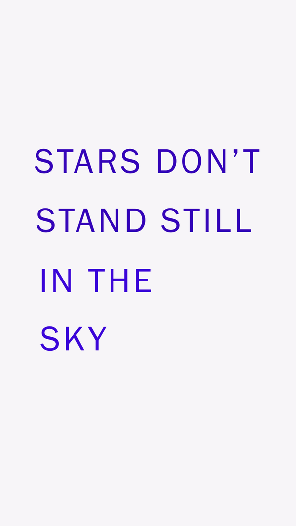 As an intern at financial investing application Clade I designed a number of type based motion graphics to play as the app launched. The animation featured a quote by artist Lawrence Weiner that reads “Stars Don’t Stand Still In The Sky”.